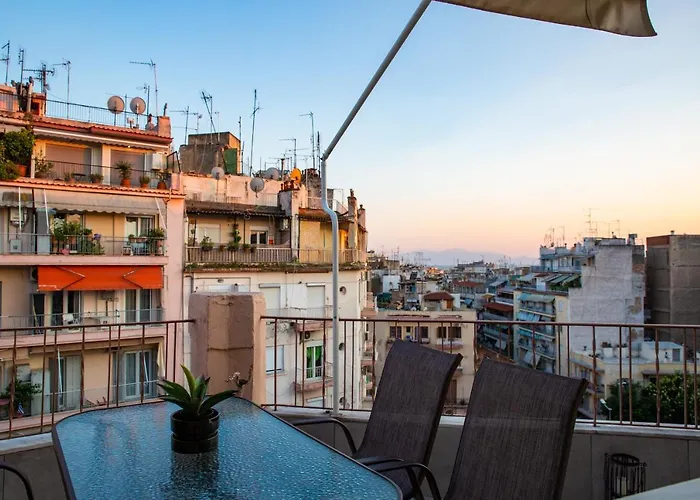 O aeroporto em Salonica fica a 21 minutos de carro e paragem de autocarro Ionos Dragoumi fica a 250 metros da propriedade. As vistas sobre a cidade podem ser observadas a partir de terraço.